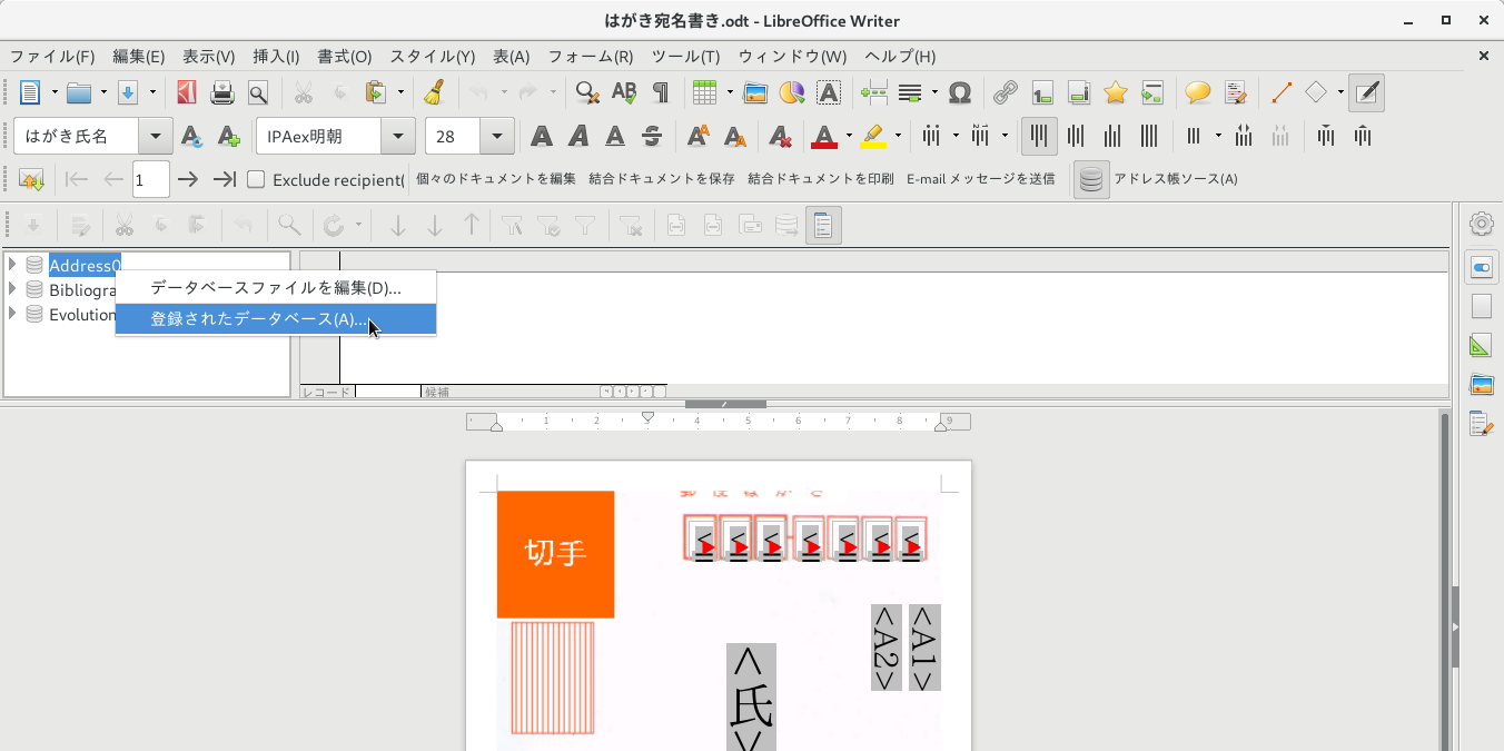 Libreoffice はがき 宛名 テンプレート. このブログは libreoffice writer と calc ではがきの宛名書きをする方法について書きました 私は ms office をずっと使ってきたので データベース access を住所録管理や備忘録 日記 こづかい帳 に使ってきました 従って年賀状などの宛先印刷も住所録管理で行ってきました. 官製はがき準拠ぽいルック フィール あくまで ぽい 通常はがき 年賀はがきの2タイプ展開 官製はがき印刷済み部品を独立レイヤーにまとめ 一括印刷是非切替および編集ロックが可能 書き文字.