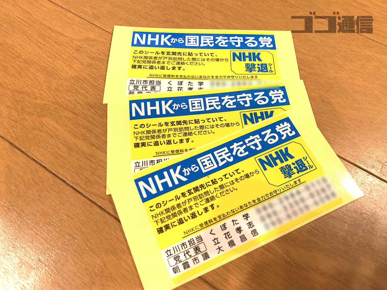 Nhk撃退シールは nhkに受信料を払っていない人を全力で応援 サポートするという nhkから国民を守る党 が作成しているものです この党によると 簡単な受信料の断り方としてステッカー nhk撃退シール を自宅の玄関先に貼っておくとnhkの集金人が来なくなるという 魔法のシールだということです.